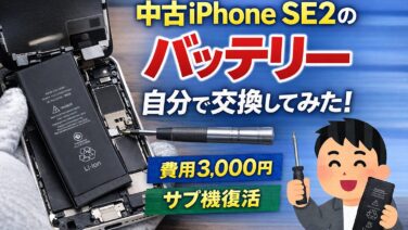PC関係iPhone SE2のバッテリー交換 中古1万円端末を自分で交換【2025年1月】 中古で購入したiPhone SE2(バッテリー最大容量74%)を自分でバッテリー交換してみた体験談。費用は約3000円、交換後の充電頻度やバッテリー交換時の注意点も解説します。 2026.01.13PC関係いろいろ