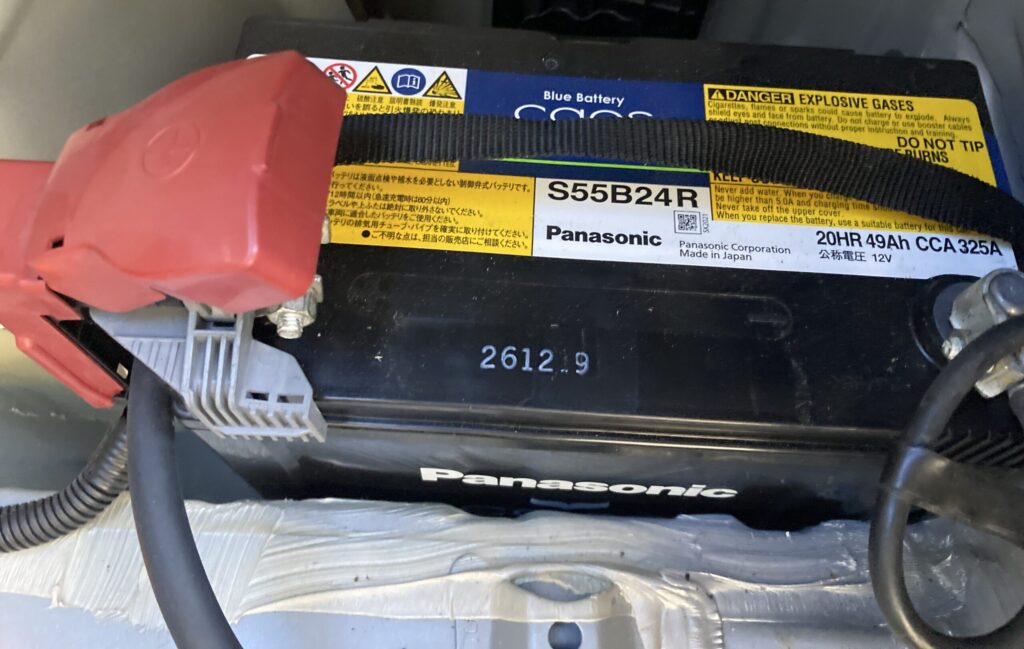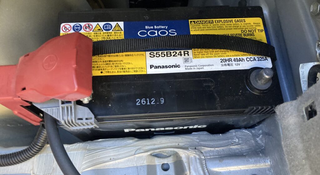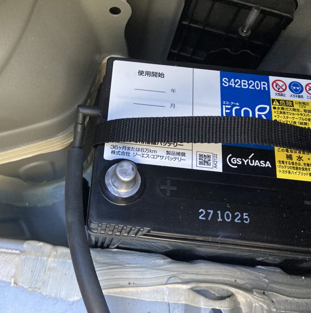 常にブースターケーブルは積んでいますが電圧が不安になる数値を表示するのでここで交換です。