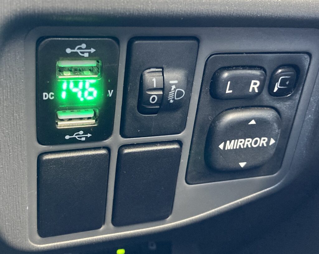 プリウスのバッテリー点検はカバーなどを外さなければいけないためめんどくさいので常に電圧を表示させています。