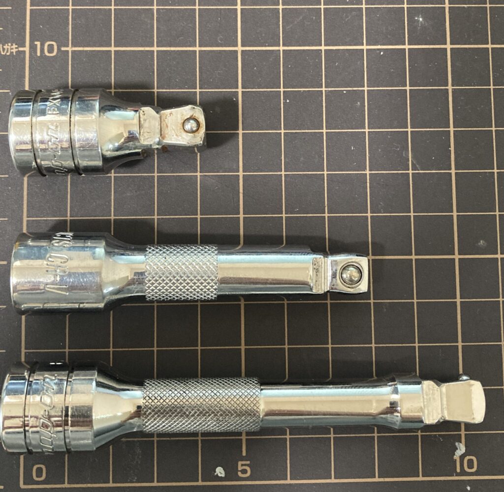 14mmのプラグソケットに一番短いエクステをさらに短いエクステを挿し。下まで落ちたらもう一本エクステを挿してラチェットをあとからつけます。
