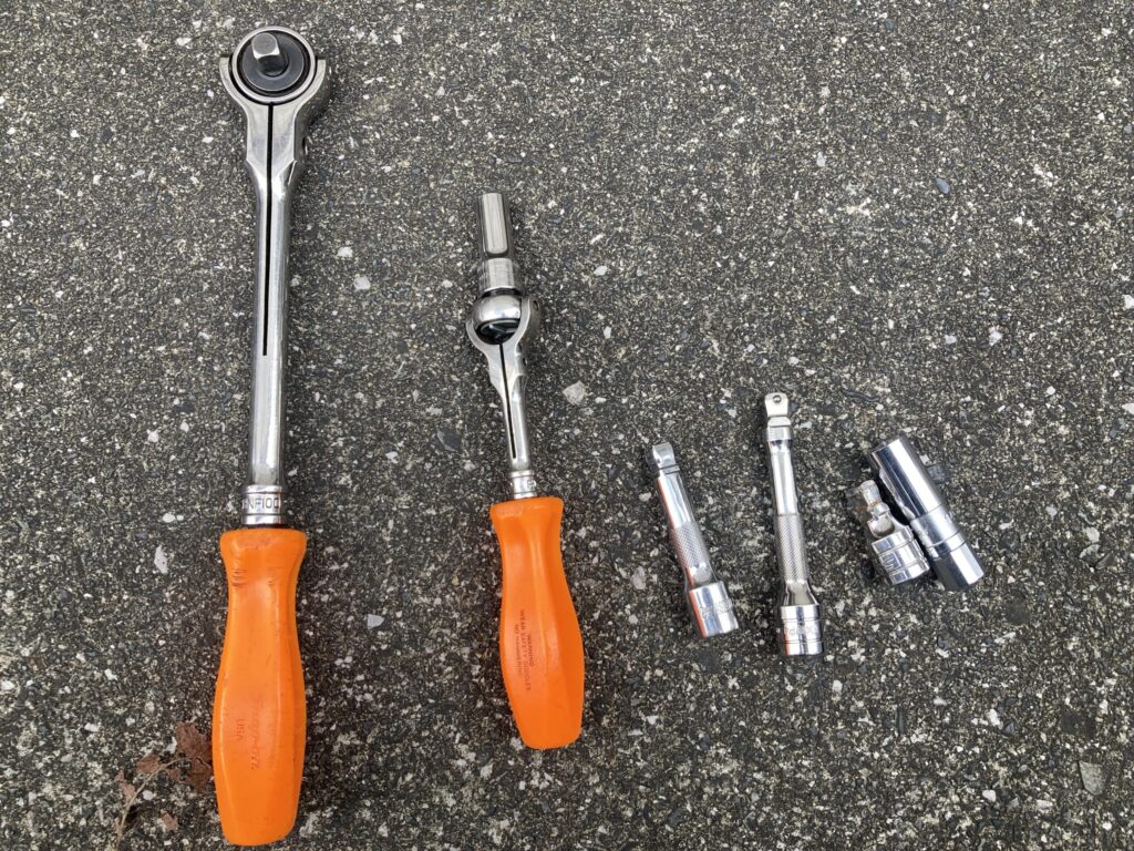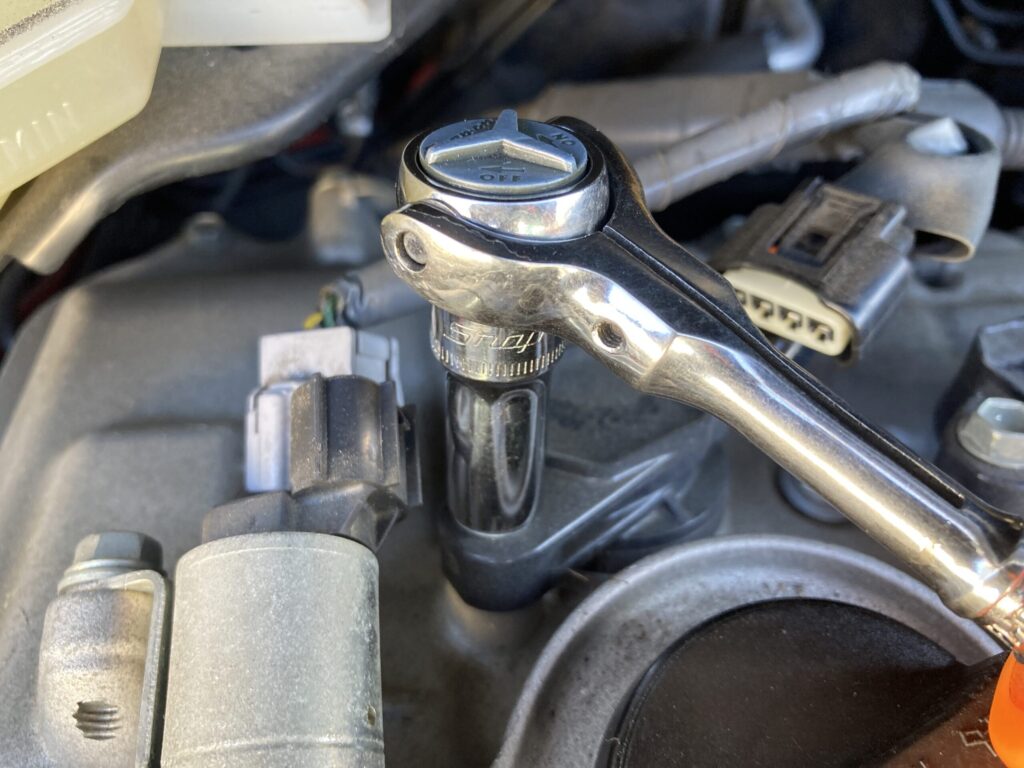 DIYで一番の山場はスパークプラグへのアクセス方法。工具の工夫が必要です。